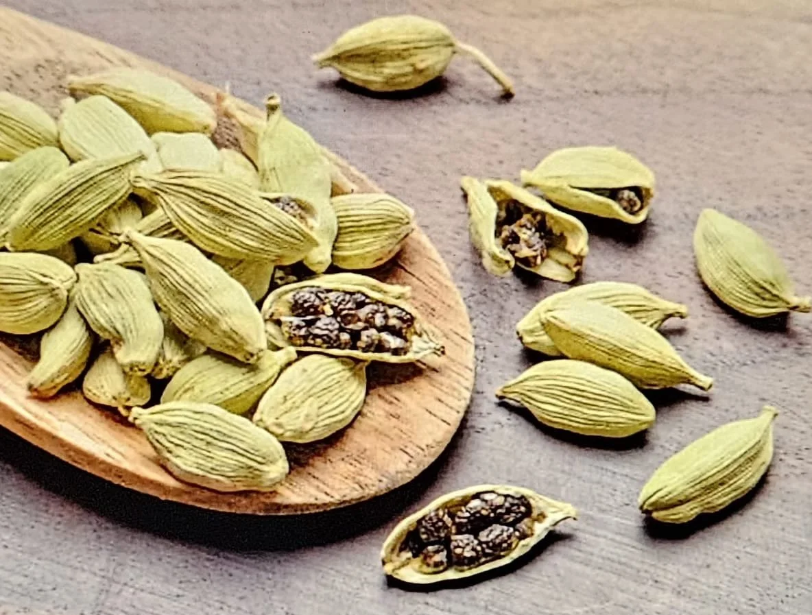 Cardamom has multiple health benefits, it helps with bad breath, halitosis; it stimulates your metabolic fire, your digestive fire and thus aids with weight loss.