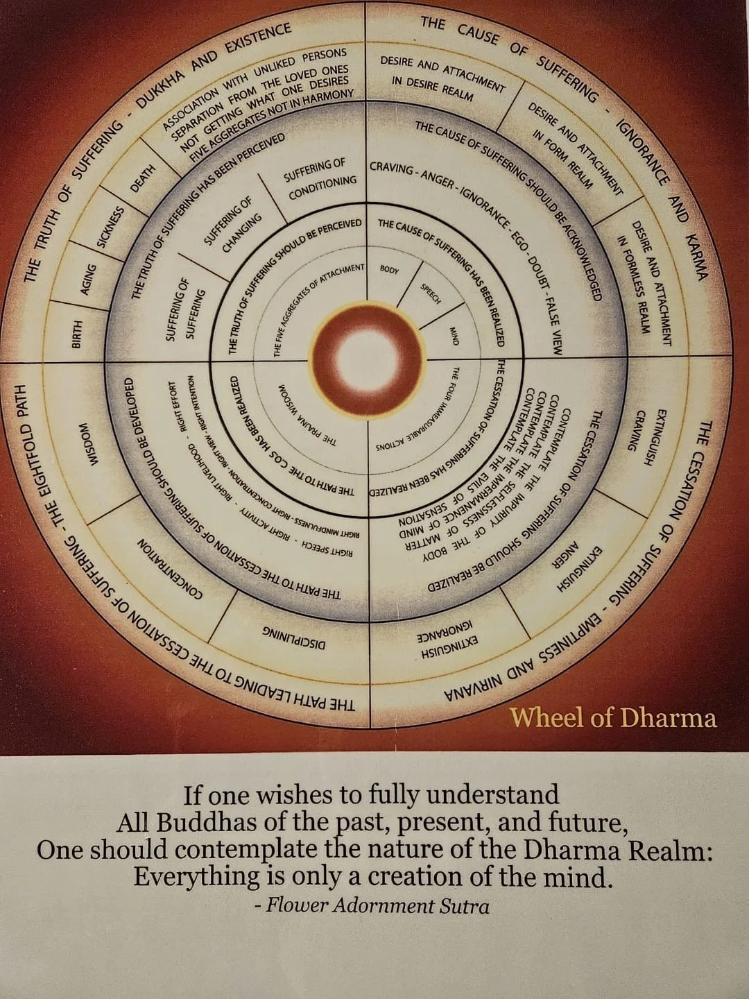 “In the Five Aggregares, there is nothing that I can call ”I,” a “ person” or a “soul.” Ignorance is the inability to see the truth. Because there is ignorance, there are mistaken impulses, Because there are mistaken impulses, there is mistaken consciousness. Because there is mistaken consciousness, there is distinction between the perceiver and the perceived. Because there is distinction between the perceiver and the perceived, there is a distinction between the six organs and the six objects of sense. Because there is the distinction between the six organs and the six objects of sense, there is contact. Because there is contact, there is feeling. Because there is feeling, there is thirst. Because there thirst, there I grasping. Because there is grasping, there is becoming. Because there is becoming, there are birth, death, and the subsequent pain and grief.